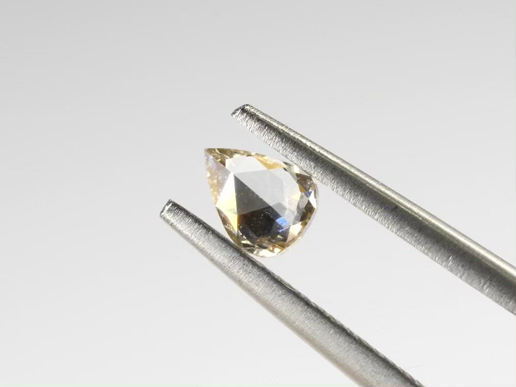 可愛らしいローズカットのペアシェイプです。僅かにシャンパンイエローカラーが入っている優しい雰囲気のルースです。