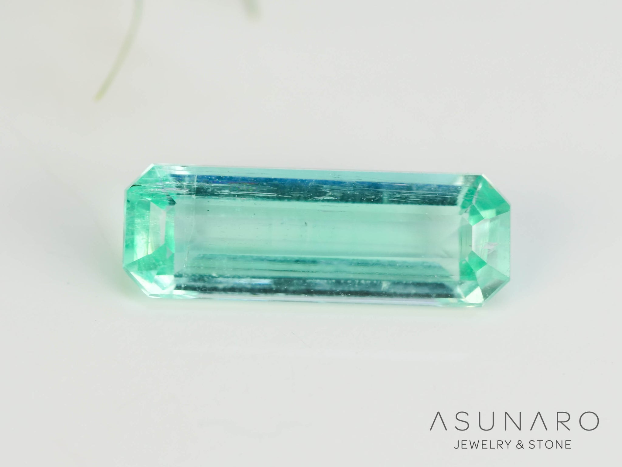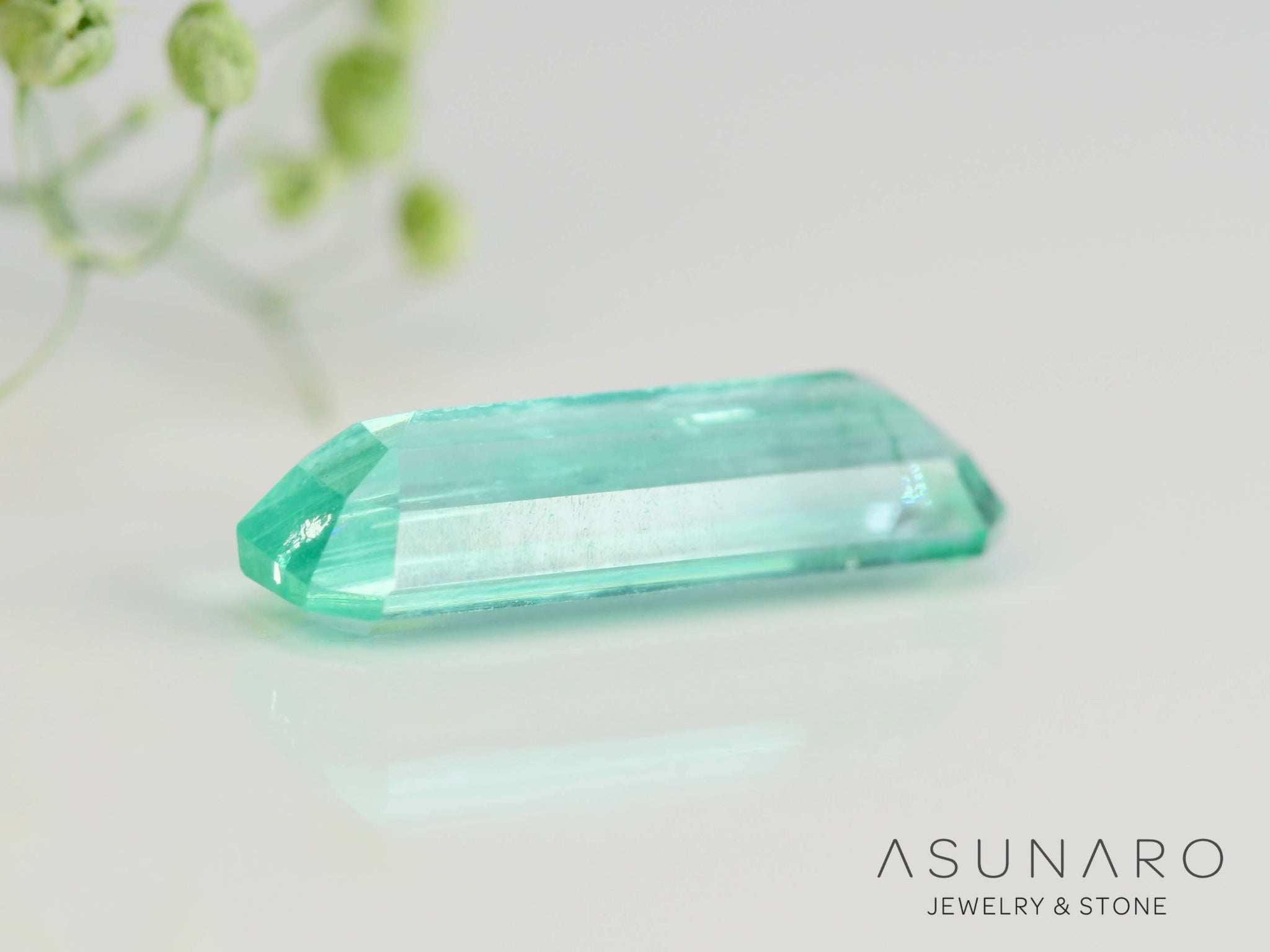 ブルーグリーンカラーが滴り落ちる水のようで美しいパライバカラーベリルです。クリアなきらめきがより一層、ルースの持つ繊細な魅力を引き出しています。