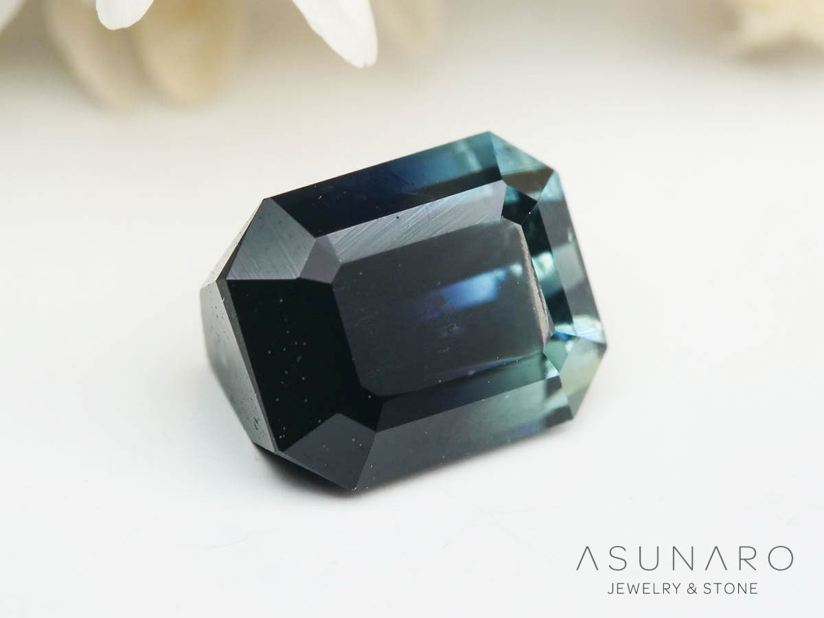深みのあるブルーからしっとりと艶めく露草色のグラデーションが大変美しいバイカラートルマリンです。