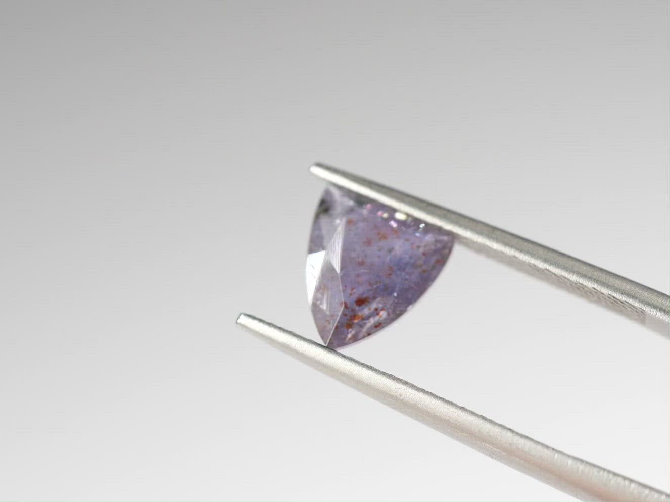 アイオライトの中には、レピドクロサイトやゲーサイトといった小さな赤いキラキラが輝き銀河を連想させる美しさがあります。同じラメラメが特徴的な「アイオライトサンストーン」とは輝き方が似ていますが、アイオライトサンストーンのラメラメの部分は「ピロータイト」という成分により黄色や白の輝きが中心になります。